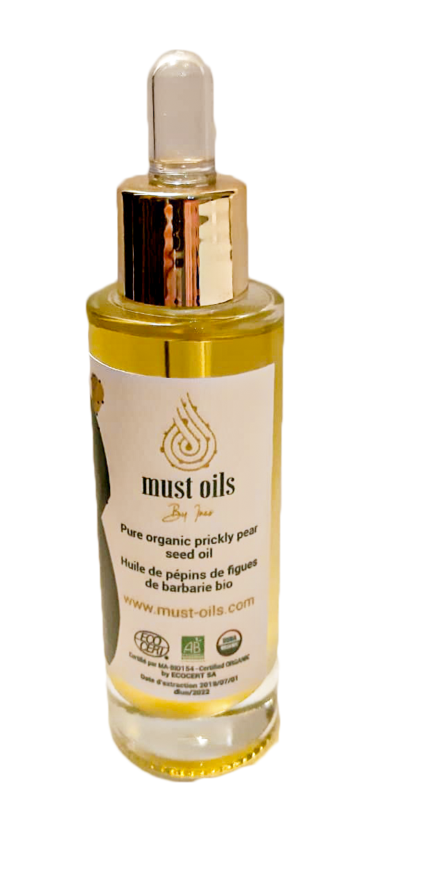 Prickly pear seed oil, an oil specially shaped to serve your desires, so that your skin is lively, young and always radiant, so that it breathes vitamins that help its freshness, and that it feeds on the elite of ingredients, an oil that selects the noblest variety of nature’s fruits and cares for your skin and cares about your well-being. Must Oils by Ines is an organic and cold pressed oil. A natural daily anti-aging face oil for healthy, flawless skin. No need for moisturizer, it is absorbed into your skin’s lipid layers to provide essential nutrients that are naturally depleted with aging and help your skin maintain hydration, all year round. For a firmness and tone of the skin, Must Oils gives you the best anti-aging formula, to fight against the signs of skin aging, rich in vitamin E, and omega-6 which promote the repair of the skin naturally. The new friend to your skin Must Oils, is the ideal nourishing oil to apply to any type of skin, resulting in a dazzling shine.For the skin: Its richness in vitamin E helps fight against the signs of skin aging. In daily care, prickly pear seed oil restores the skin's firmness and elasticity. It also contains omega 6 in good proportion which helps fight against dehydration of the skin and also participates in cell renewal.
